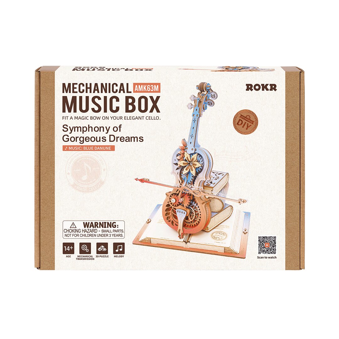 Otkrijte čaroliju klasične glazbe i pedantne izrade u jednom - Simfonija lijepih snova ROKR AMK63M je više od obične drvene slagalice. To je umjetničko djelo koje kombinira eleganciju violončela s mehanikom glazbene kutije i bajkovitom atmosferom čarobne knjige.