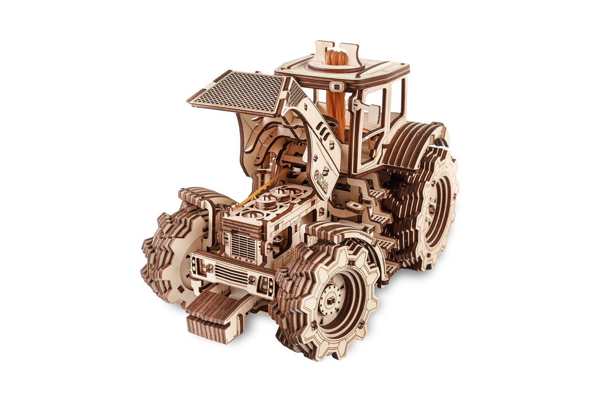 Drveni 3D model traktora tvrtke Eco Wood Art impresivan je mehanički konstrukcijski komplet koji kombinira preciznu konstrukciju, realistične tehničke elemente i ekološke materijale. Ovaj model predstavlja poljoprivredni stroj s 4-brzinskim mjenjačem , radnim gumenim motorom i vidljivim 4-klipnim motorom ispod haube . Svaki ljubitelj tehnologije ili modela cijenit će visoku razinu detalja i dobro osmišljenu mehaniku.